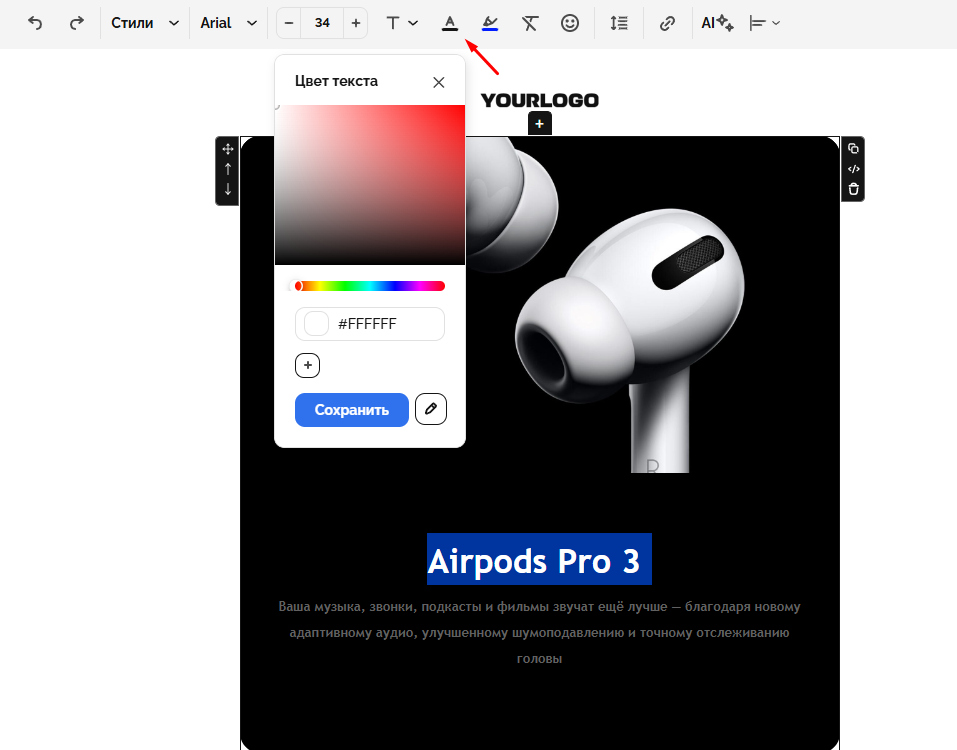 • Измените цвет текста (например, белый или чёрный — в зависимости от фона).