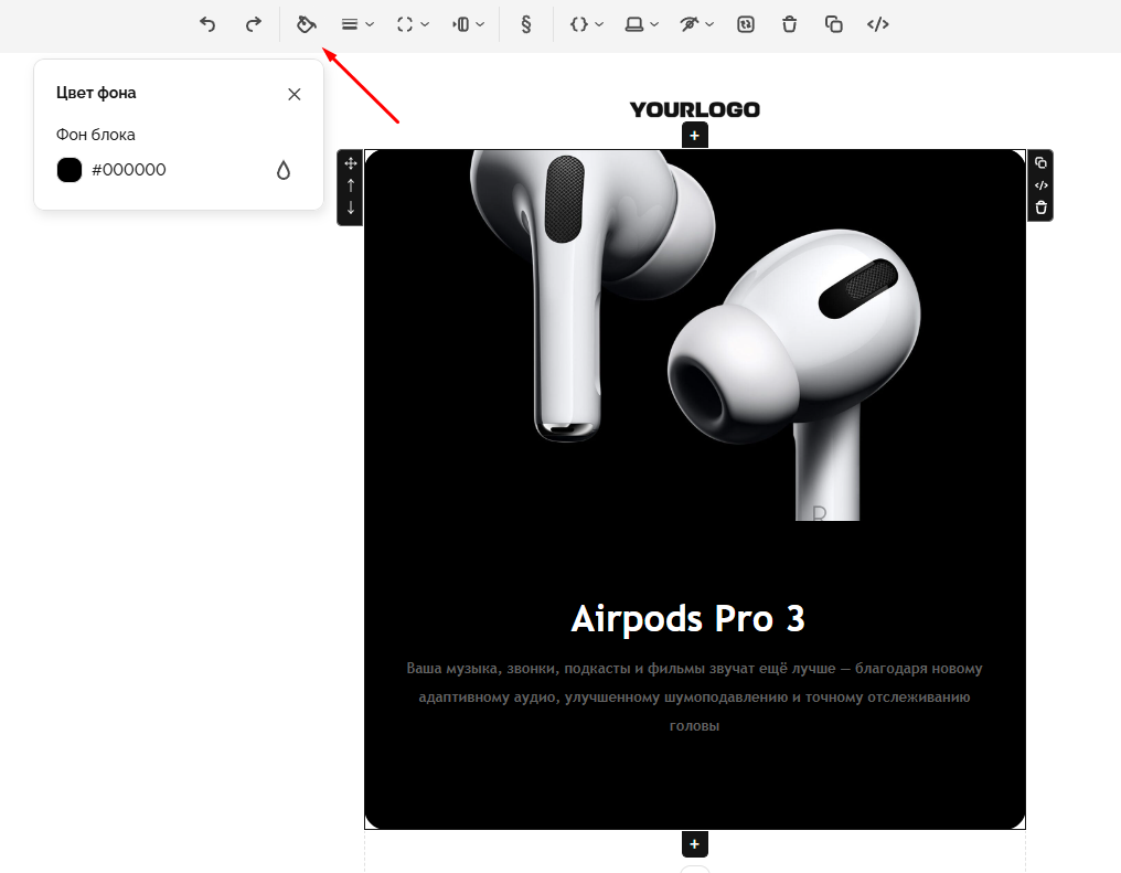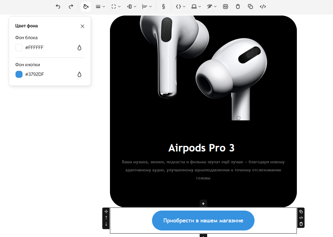 • Измените фон кнопки на белый: кликните по фону блока → откройте «Цвет фона» → выберите белый.