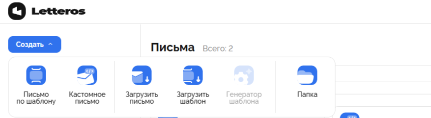 — Загрузить письмо / шаблон: удобно, если шаблон или письмо уже сверстаны вне платформы.