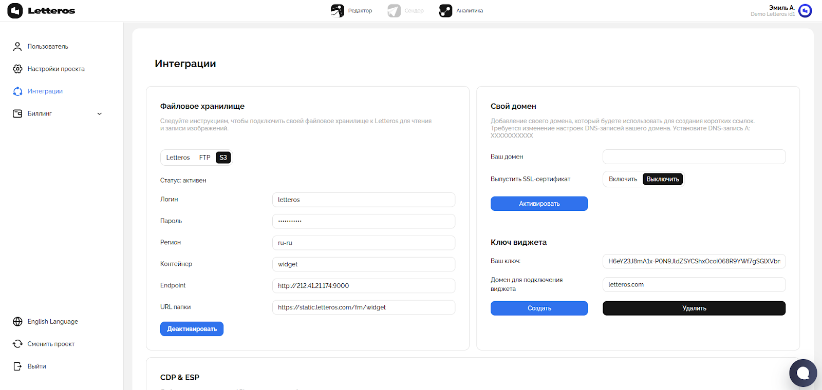 Раздел «Интеграции»